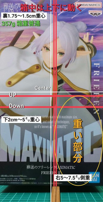 #重心情報 学園アイドルマスター ESPRESTO-Sweet moment-篠澤 広 ⚠️入れ方で個体差あり 【Box size】25×14×奥14cm 【重量】316g 箱はやや軽め☝️ ♦️箱中はやや軽めで、全方位動く 上下2.5cm>左右2cm>前後7.5 ㍉の順に大きく動く。 ⚠️暴れあり🤔 裏側に重め〜わずかに重めで、